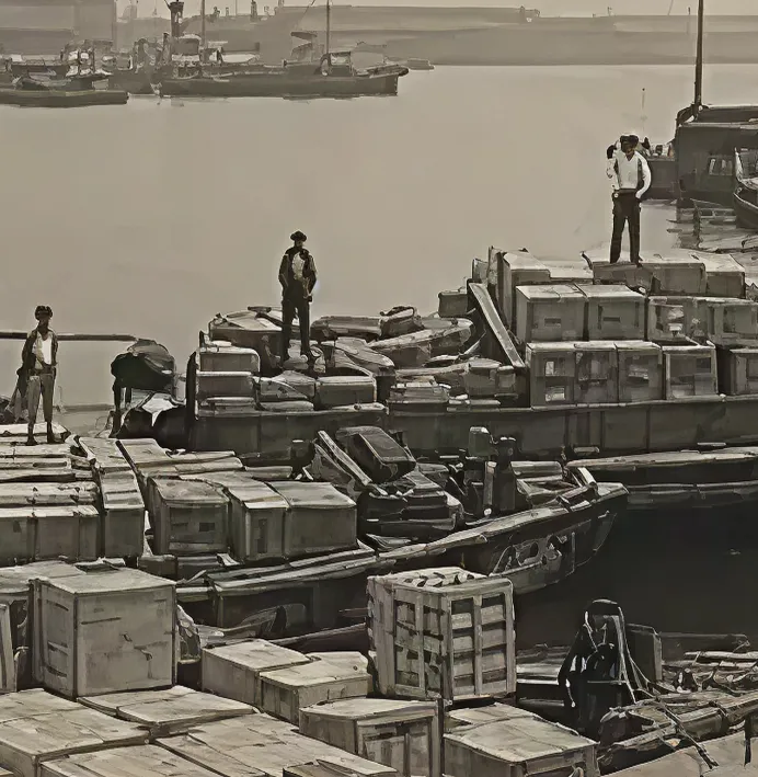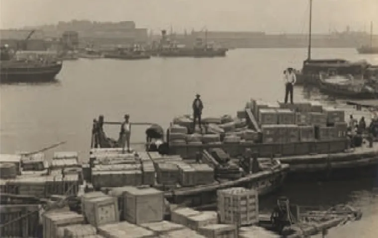 1867年、神戸港開港とともに誕生した上組は、港湾物流のパイオニアとして、あくなき挑戦を繰り返してきました。ここではそんな当社の歩みを創業期から、戦後の再興期、海外進出を果たした拡大期、港運業者初の単独ターミナル運営を実現した躍進期、そして、これからの上組を飛躍期として、歩みを紹介していきます。
