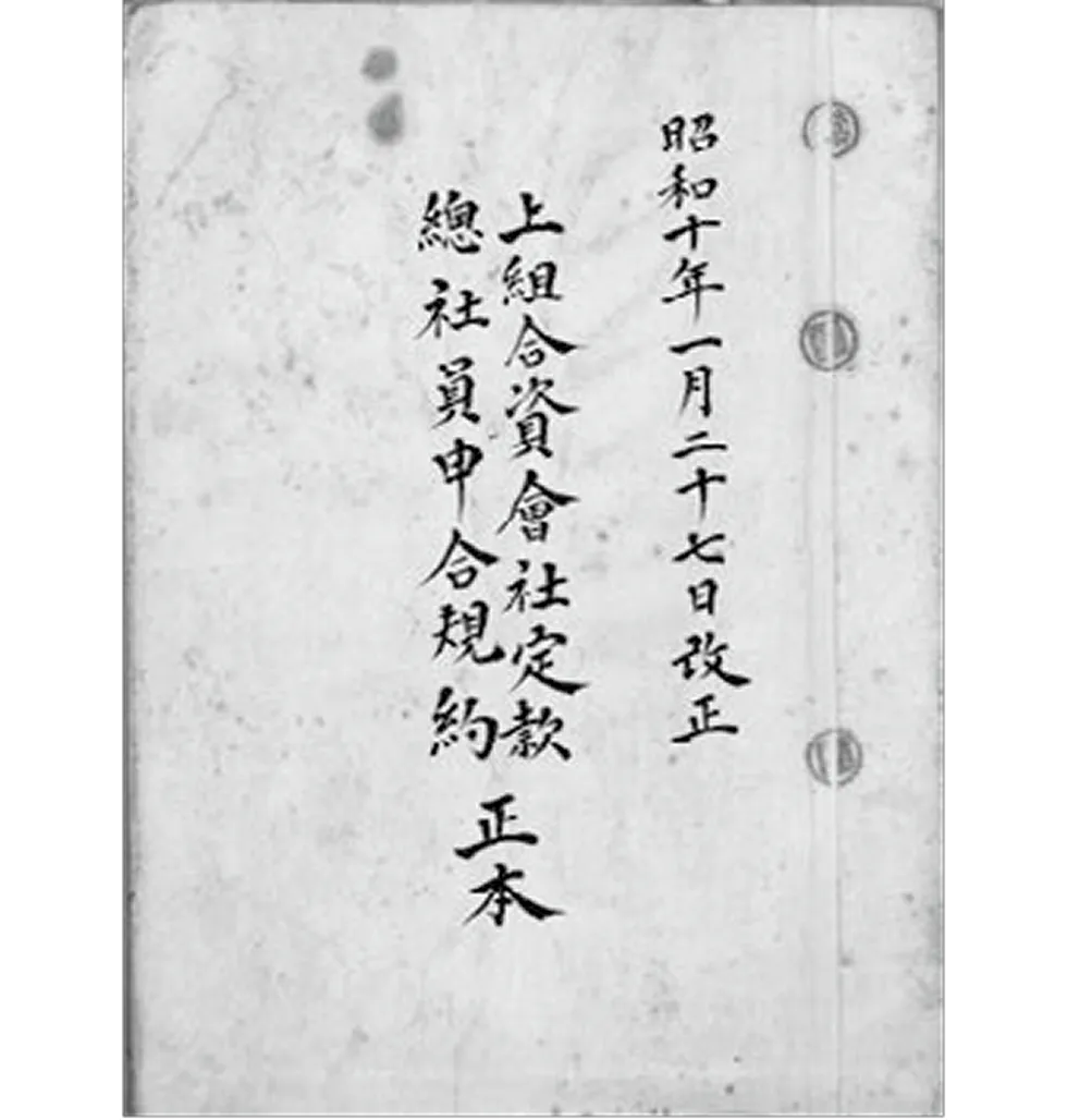 合資会社化を機に、1911年3月には総社員申合規約を制定し、定款と同様に上組の憲法とした。
