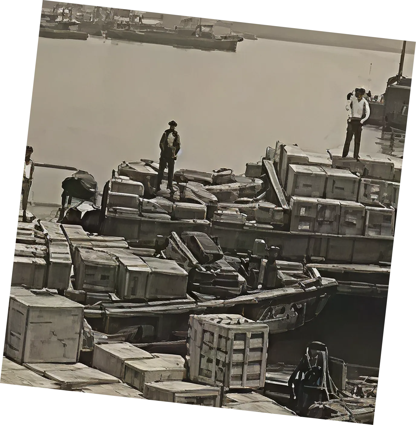 1945年第二次世界大戦が終結。貿易は断絶し、港湾の復興など目途のつけようもなく、当社も業務を全面的に停止せざるを得なかった。