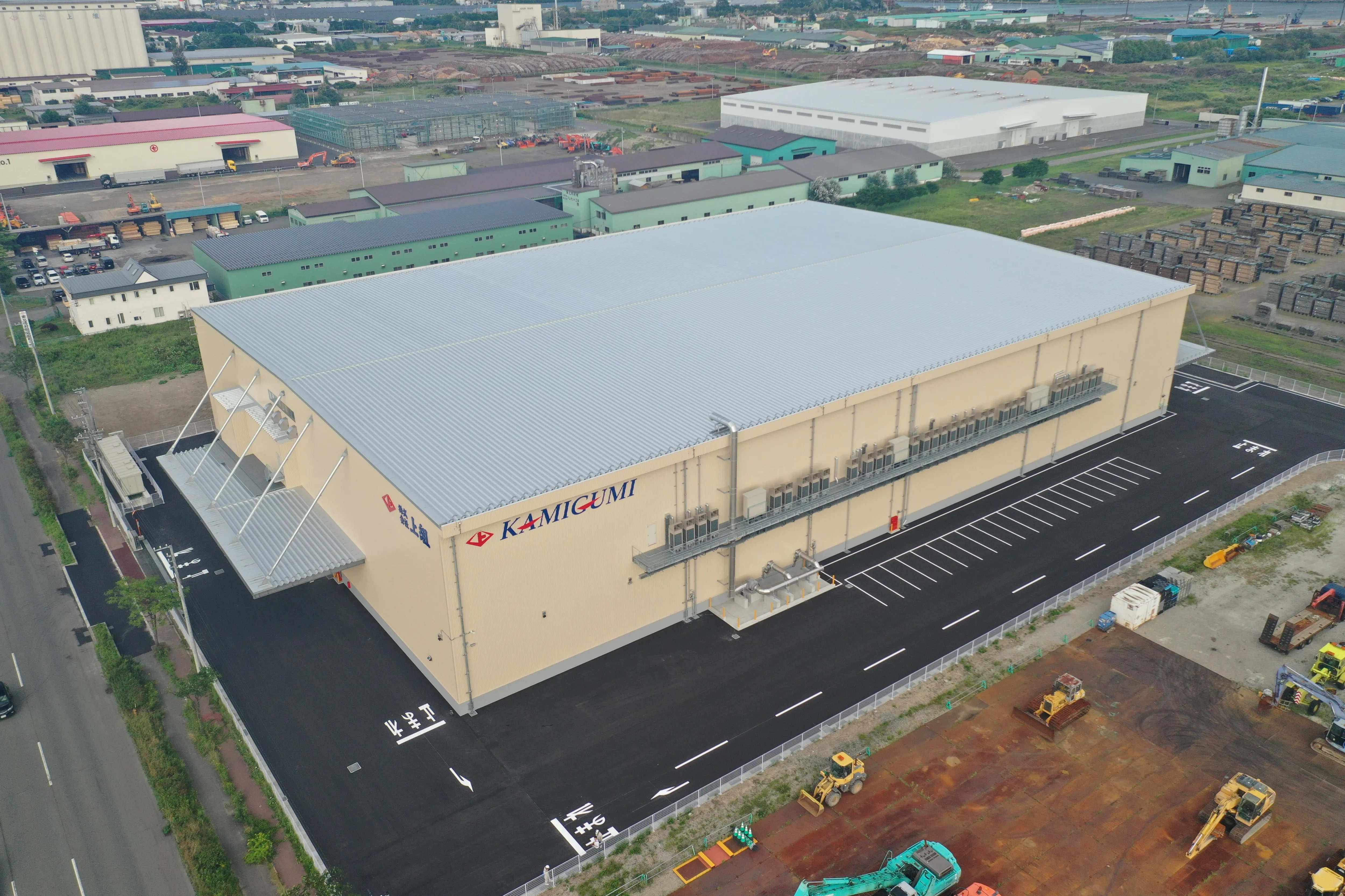 この度、株式会社上組(本店:神戸市中央区、代表取締役社長:深井義博、以下「当社」)は苫小牧港(北海道苫小牧市)に建設を進めておりました「晴海物流センター」を9月1日に竣工いたしました。 既報『晴海物流センター(仮称)建設のお知らせ』(2023年11月10日付)のとおり、当社は苫小牧港に物流施設を保有しておりますが、近年、政府米・国産飼料米等の取扱い増加が著しく、今後も需要拡大が見込まれるため、これらの貨物の需要拡大に確実に対応し、かつ顧客への安定的なサービス提供をすべく同センターを建設いたしました。 「晴海物流センター」では定温庫をメインとしつつ、一部を冷蔵庫・燻蒸庫とすることで多様化する貨物に対応しています。また、既存施設よりも苫小牧港に近いため輸送時間が短縮されるなど、顧客ニーズに即したより一層質の高いサービスを提供してまいります。 当社はこれからも中期経営計画の目標達成に向け、基本方針のひとつである「国内基盤事業のシェア拡大・強靭化」に向け、引き続き取り組んでまいります。