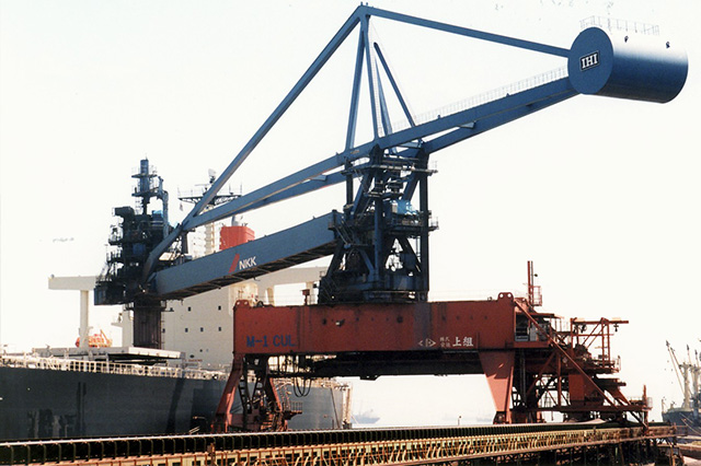 • 原料の本船荷役(大型アンローダー・ベルトコンベヤによる荷揚げ、搬入)