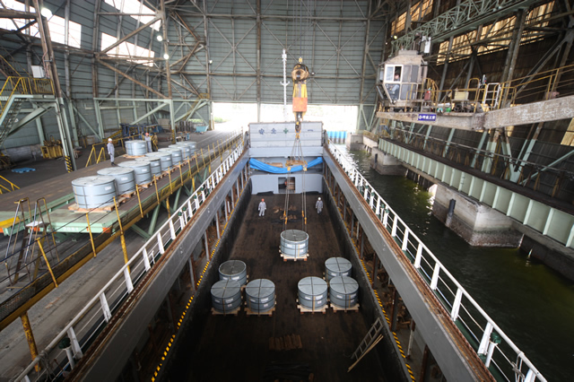 最終製品である厚板やコイルなどの、倉庫への入庫から在庫管理、船積みなどの出荷作業までお引き受けします。鋼管などの長大製品輸送も、当社保有の特殊車両で対応します。