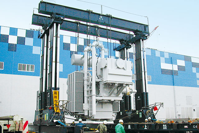 超重量貨物の輸送にも耐えられる世界最大級のユニットキャリアをはじめ、クレーンなどの揚重機器が寄り付けない狭い場所や屋内でも使用できる800t吊りパワーリフトなど、重量貨物、大型貨物の輸送に必要な各種装置を保有しています。そのため、工場搬出から現地据付まで、一貫してお任せいただけます。