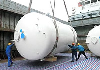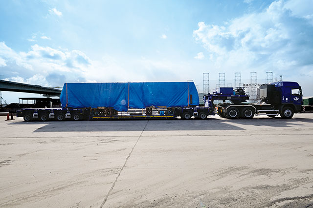国内及び海外メーカーから海上輸送されるプラント機器の水揚げ、重量物運搬車両による日本国内(納入先)への輸送及び現地での据付までの一貫輸送を行っています。
