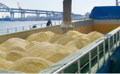 本船で運ばれてきた小麦・大豆などの穀類を専用機器で荷揚げし、サイロでの保管を経て、お客様にお届けします。食品・飼料メーカー様の必要に応じ、国内流通の中間基地として貨物の保管・運搬を担っています。