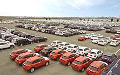 輸出用の完成車・中古車の、陸上輸送から通関、船積み業務までを一貫して行います。保有する自動車輸送専用車で輸送ののち、輸出車専用ヤードにて一旦保管し、専用船に積み込み輸出します。