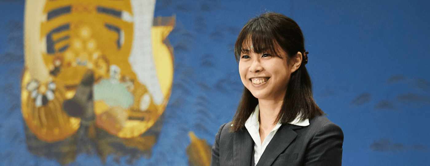受付業務では、来社された方が少しでも安心できるように笑顔と丁寧な対応を心がけています。上組として、お客様に一番最初に接するポジションなので、良い印象を持っていただけるように常に意識しています。学生さんや初めて来社される方も多くいらっしゃるので、相手の気持ちになって、少しでも緊張をほぐしてもらいたいという想いで対応するようにしています。