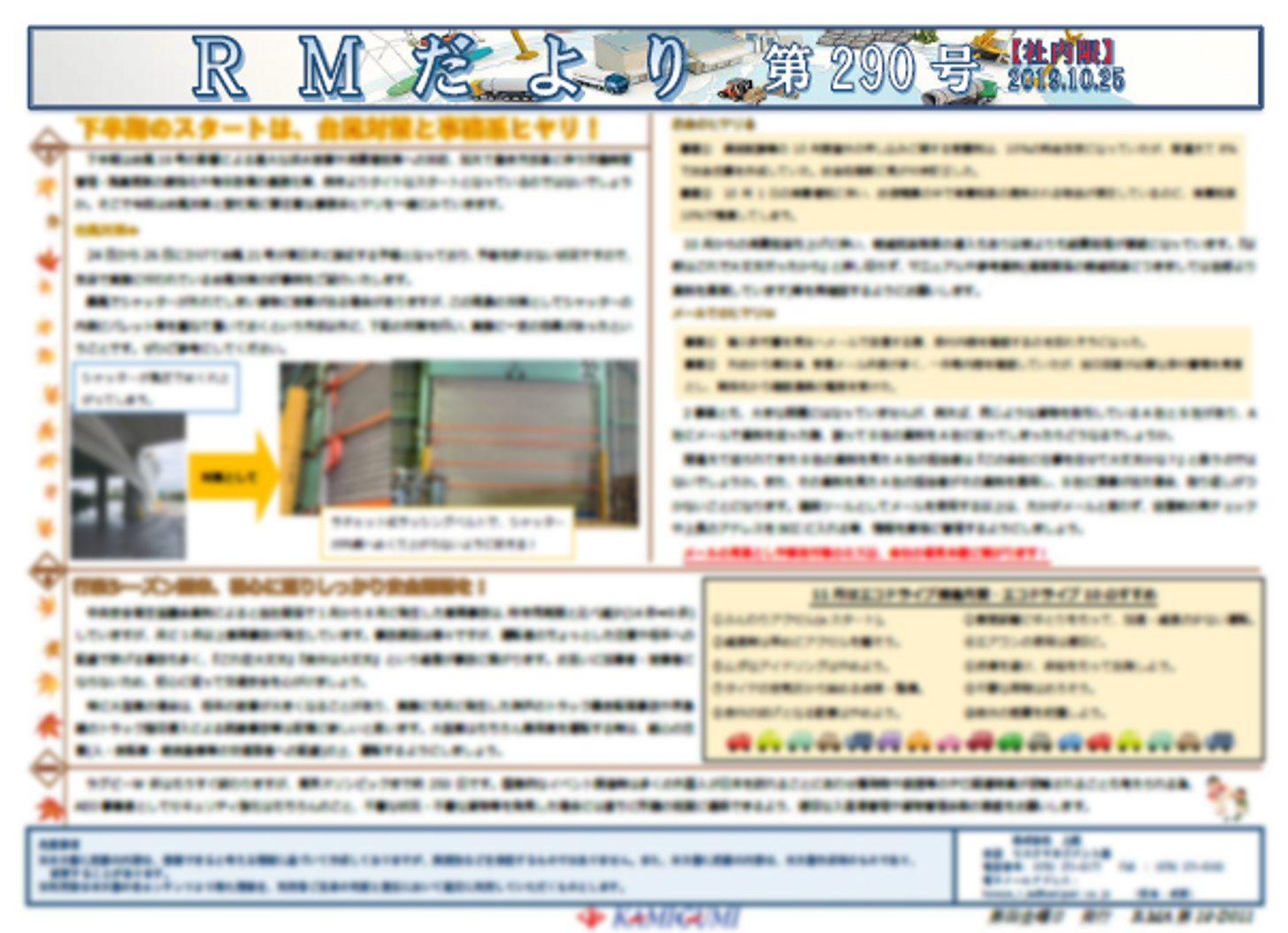 2010年度より「RiskManagementだより(RMだより)」を発行(2025年3月末現在 第360号)し、従業員へ情報提供するほか、職場での読み合わせなど社内教育の教材として活用しています。