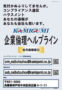 また、内部通報制度に関する従業員研修をはじめとして、全ての従業員に制度を周知するため、事業所内でのポスター掲示や全ての役員・従業員がより安心して制度を利用するために、ガイドブック「上組グループ 企業倫理ヘルプラインのA.B.C」を作成・配布し、制度の適切な運用を図るために尽力しています。